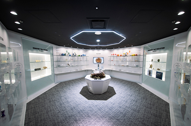 生きものの模様でラッピングした空間は芸術作品そのもの。