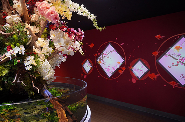 日本文化特有の美意識や感覚である「わびさび」。生きものたちの美しい輝きを加えた和(なごみ)空間を創出。